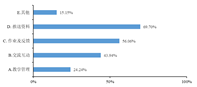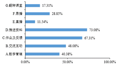 统计数据显示:线上课堂常用互动手段DC,提问、测试题,不同专业数据基本一致。