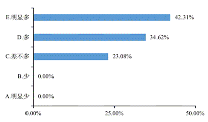 统计数据显示:对线上教学教学方法的思考和尝试DEC,多、明显多、差不多,不同专业数据基本一致。