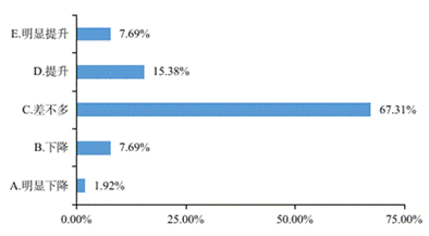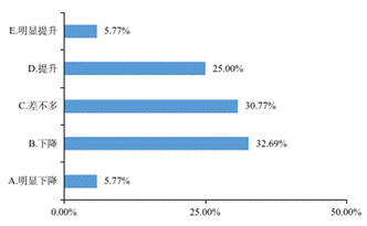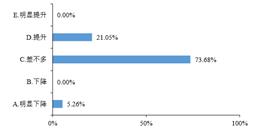 统计数据显示:与线下教学比较,线上教学学生参与课堂互动情况BCD,下降、差不多、提升,不同专业数据基本一致。
