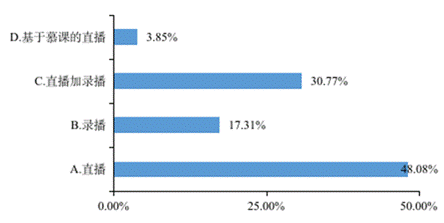 统计数据显示:采用的线上教学授课方式ACB,直播、直播加录播、录播,不同专业数据一致。