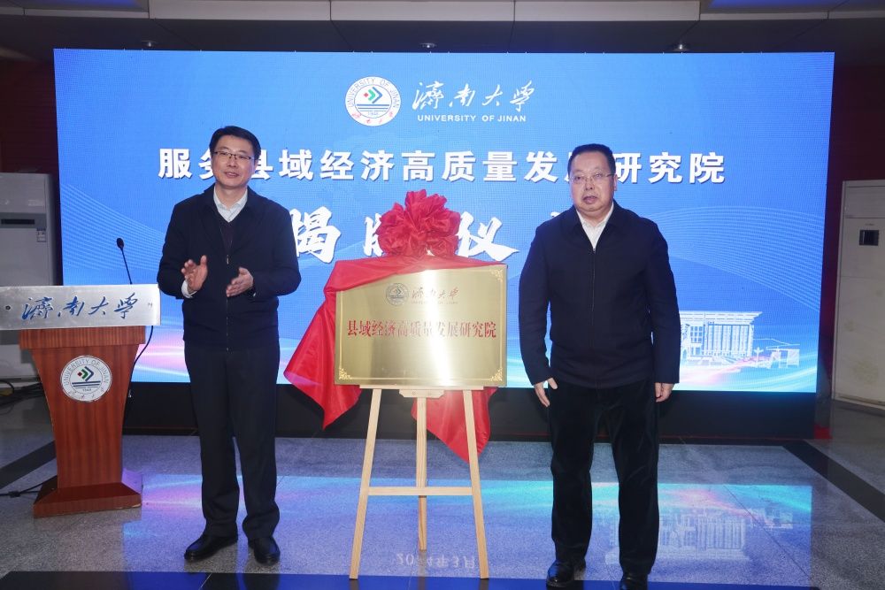 仪式上,史志远和刘宗明为“济南大学服务县域经济高质量发展研究院”揭牌。