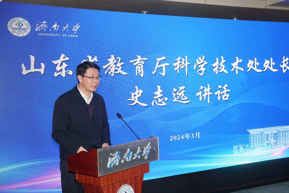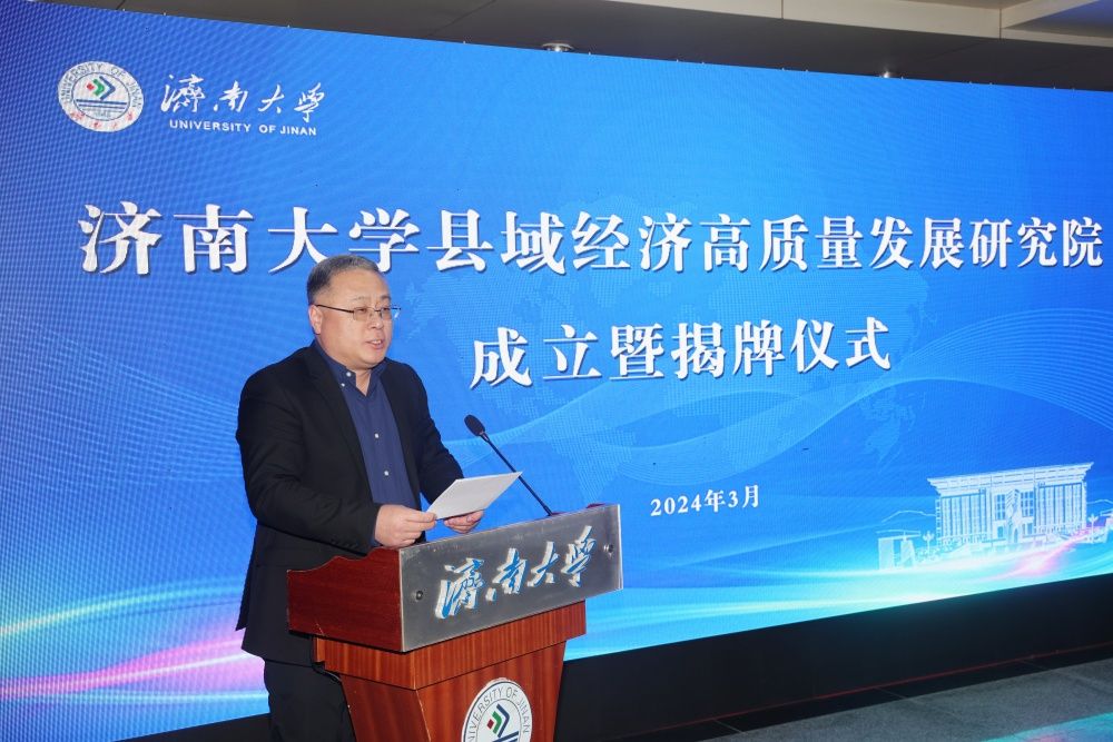 史志远在讲话中对研究院的成立表示热烈祝贺!他指出,省教育厅一直以来认真贯彻落实党中央决策部署和省委工作要求,推动教育、科技、人才三位一体统筹发展,开展“百校万企万师双进”行动,鼓励支持我省高校在全面提升人才培养质量、服务区域经济社会发展上先行先试。他强调,济南大学始终将自身发展置身于山东区域建设中,研究院的成立是服务我省县域经济高质量发展的又一重要举措,在我省高校中起到很好的表率和带动作用。他表示,希望研究院成为服务县域创新发展的孵化器,服务县域协调发展的谋略库,服务县域绿色发展的大课堂,服务县域开创发展的引智场,服务县域共享发展的动力源。祝愿研究院越办越好,希望济南大学在推动我省教育高质量发展,服务新时代社会主义现代化强省建设中作出更大贡献。