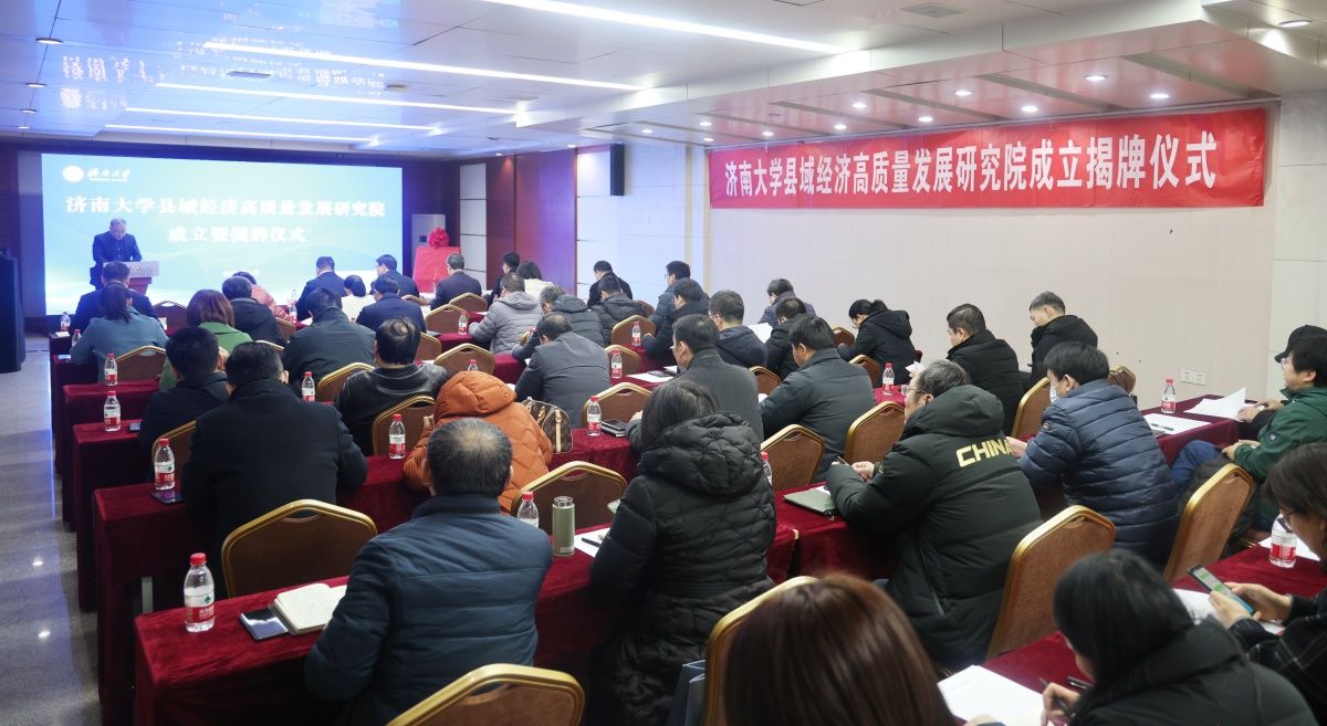 3月1日,济南大学举行服务县域经济高质量发展研究院(以下简称“研究院”)成立暨揭牌仪式。山东省教育厅科学技术处处长史志远,校长刘宗明、党委副书记查玉喜、副校长黄加栋出席仪式,学校党委组织部、人力资源处、教务处、科技处、社科处、研究生院、合作发展处等部门负责人,各学院负责同志参加活动,黄加栋主持了仪式活动。