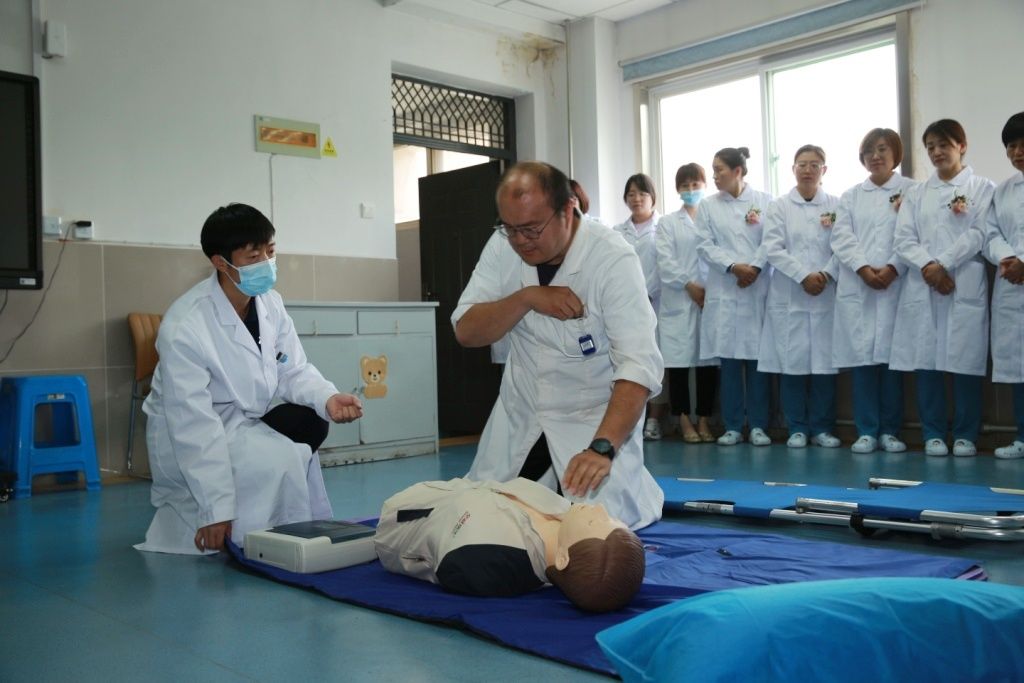 活动中,四名医护人员现场模拟了“三人心肺复苏操作”,扎实精湛的医护功底和精湛的技能得到一致好评。