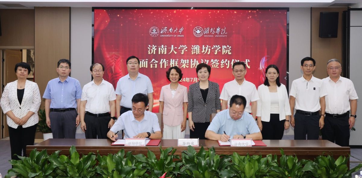 会上,刘宗明与来逢波签署济南大学、潍坊学院全面合作框架协议。