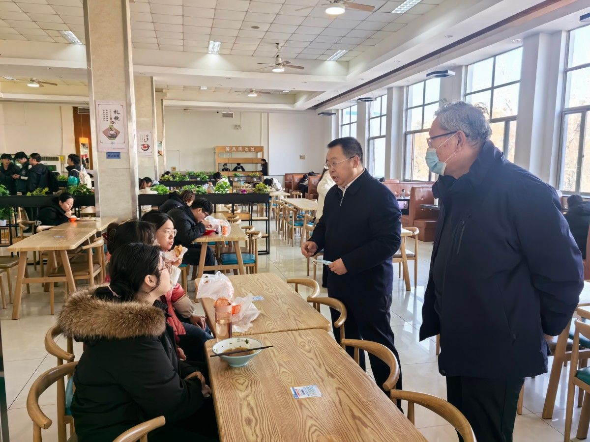 12月27日中午,校长刘宗明、副校长张勇带领检查组以“四不两直”形式到舜耕校区检查食堂工作,并与学生共进午餐。