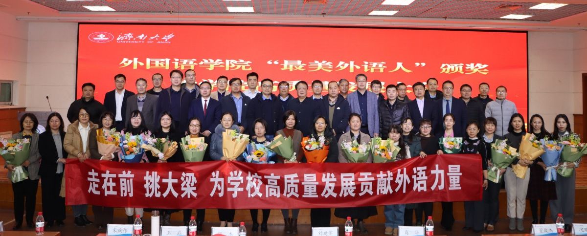 1月7日下午,外国语学院“最美外语人”颁奖典礼暨学院高质量发展大会在第二学术报告厅举办。学校党委副书记商华,济南大学特聘教授、上海交通大学外国语学院教授刘建军,党委学生工作部(处)、教务处、社科处、党委研究生工作部、合作发展处等部门负责人,学院领导班子、学院全体教师和学生代表参加活动。大会由外国语学院副院长王勇主持。