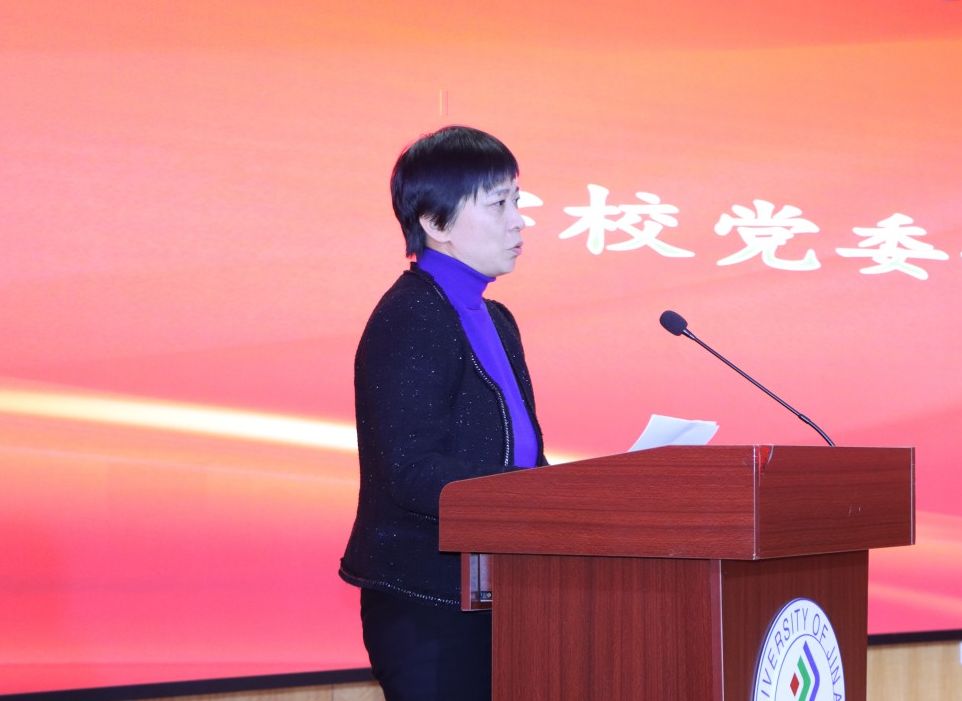 商华向获得表彰的先进集体和先进个人表示祝贺。她指出,外国语学院全体师生以习近平新时代中国特色社会主义思想为指导,深入学习贯彻党的二十大和党的二十届二中、三中全会精神,围绕学校第四次党代会确定的“一二三”发展思路和“四五六”战略部署,以教育家精神为引领,在学院内涵式发展道路上挺膺担当、砥砺奋进,各项工作均取得了突出成绩。希望全院教职员工继续发扬奋斗精神,坚持以德立身、守正创新、锚定目标、接续奋斗,自觉跟进时代创新的步伐,充分发挥主人翁精神,更加广泛地参与到学校建设改革发展中来,积极为学校、学院事业发展出谋划策、尽心出力,以更加饱满的热情投入工作,为学校高质量发展贡献外院力量。