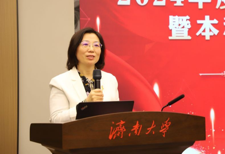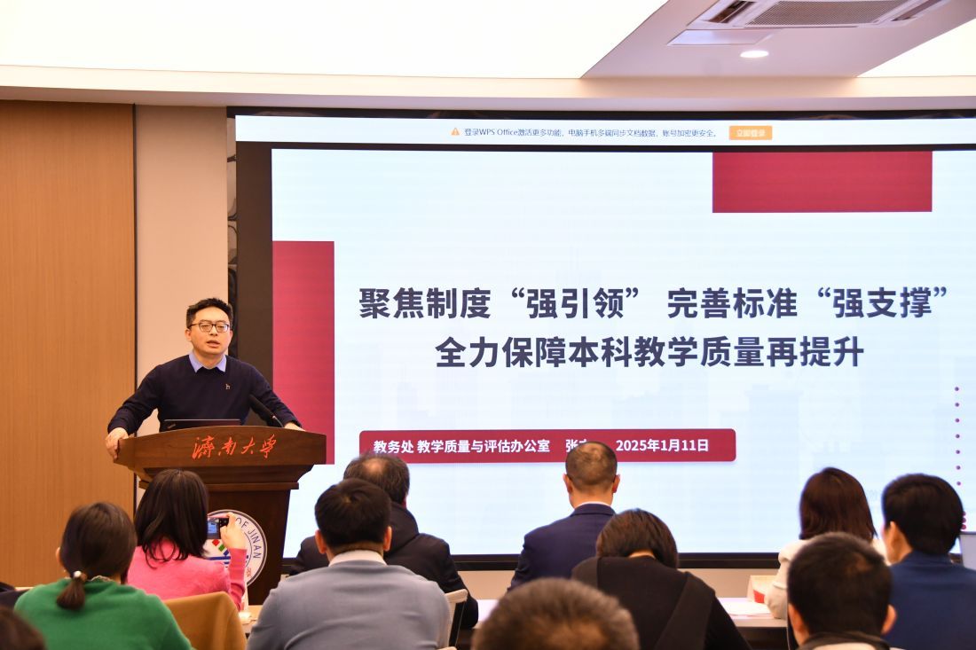 王霞发表讲话,对过去一年里教务处及各教学管理单位在提升教学质量、深化教育教学改革等方面所做的努力表示衷心感谢,并对2024年度学校本科教学工作取得的突出成绩给予了充分肯定。她强调,本科教学是高等教育的基础和根本,教务处2025年的工作理念是“教学质量提升年”,质量是教育的生命线,全体教师和教学管理人员要进一步统一思想,提高认识,坚持以本为本,落实立德树人根本任务。结合新一年的重点工作,王霞提出三点要求:一是坚持以学生发展为本,数智赋能,因材施教,注重培养学生的自主学习能力、创新思维能力和实践能力;二是坚持服务为先,优化教学管理制度和流程,不断提升管理能力和服务水平;三是坚持质量为要,以新一轮审核评估整改以及贯彻落实教育教学大会精神为契机,全面规范质量标准,不断强化质量保障机制,建设质量保障文化,提升质量保障实效。