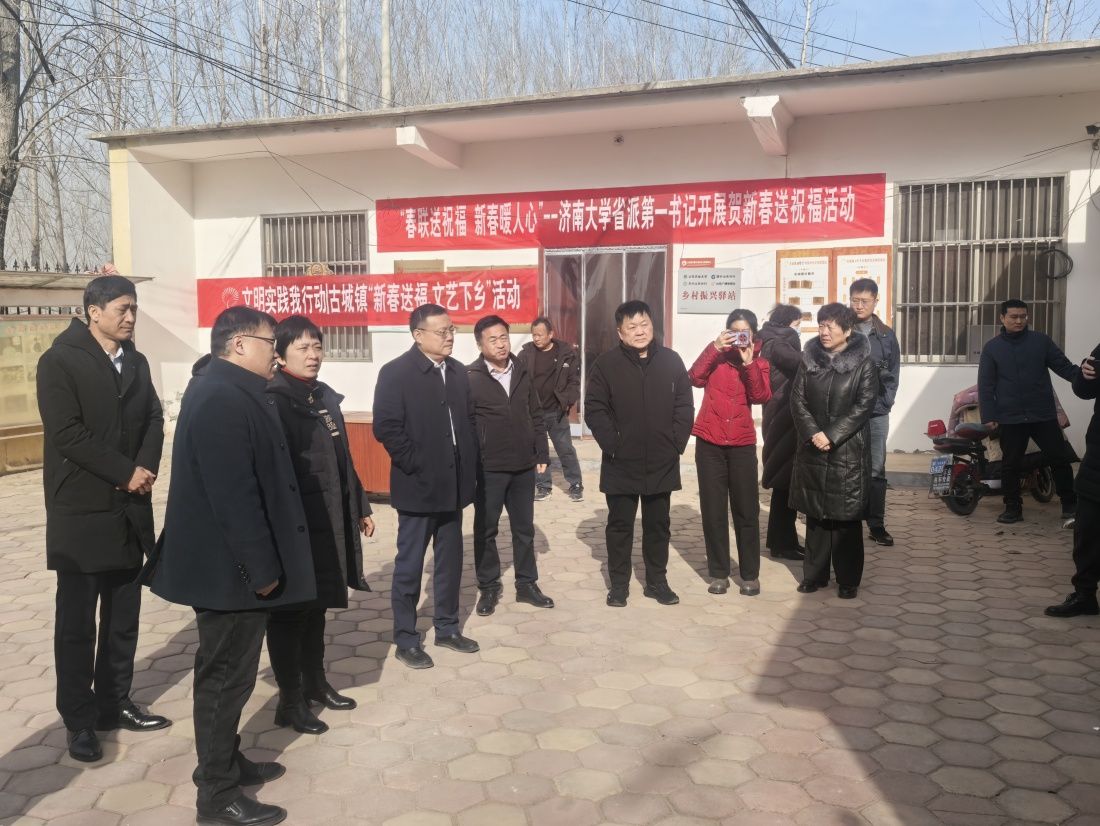 1月14日,学校党委副书记商华带队赴莘县古城镇看望济南大学第六轮省派第一书记并开展乡村振兴工作调研。学校党委组织部、党委学生工作部(处)、文化和旅游学院相关负责人及专家教授陪同活动。莘县县委书记孙奇宏,县人大常委会党组书记、主任顾磊,县委副书记(挂职)董钦,古城镇党委书记魏永利,古城镇党委副书记、镇长孙洪朝及省派第一书记参加有关活动。