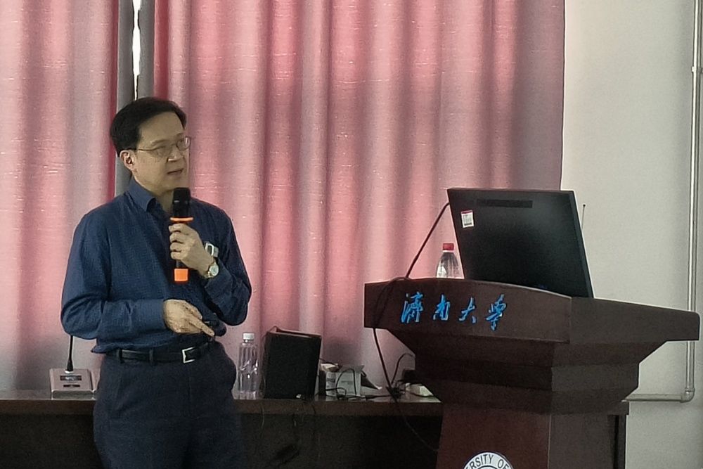 3月30日,应化学化工学院邀请,香港理工大学理学院黄维扬院士和许林利助理教授一行来济南大学进行学术交流,交流会由化学化工学院院长陈国柱教授主持,60余位教师和研究生参加交流活动。