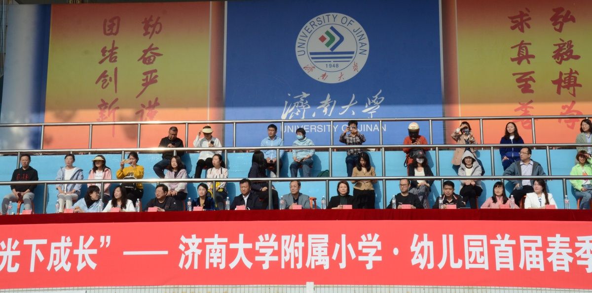 近日,济南大学附属小学·幼儿园首届春季运动会在济南大学主校区体育场举行。济南大学关心下一代委员会办公室主任、济南大学离退休处处长高卫红,济南大学体育学院院长亓圣华,飞跃童年儿童运动与健康研究院院长王娜娜,济南大学基础教育中心党委书记、主任张峰,济南大学附属小学校长严婷,济南大学幼儿园园长万晓霞,济南大学附属小学、幼儿园家长代表及家委会代表2000余人参加了本次运动会。