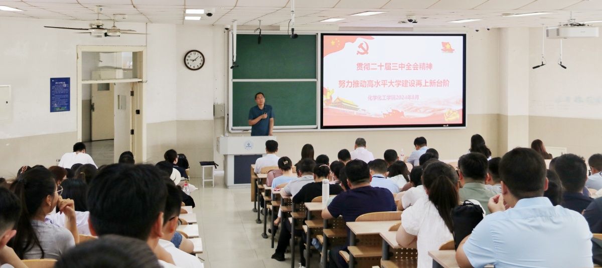 8月27日,化学化工学院召开新学期全体教职工大会,传达学习学校四届五次全委会扩大会议精神,部署学院各项工作。学院班子成员、全体教职工参加会议,会议由学院党委书记贺铭主持。