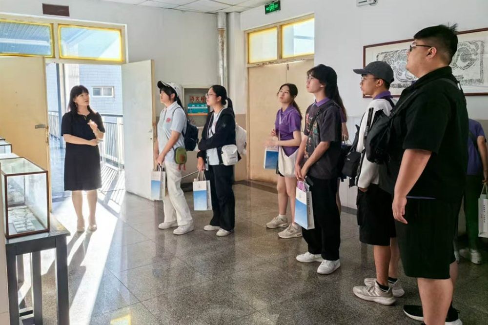 随后,台湾师生们来到了山东省中国古代建筑研究基地。基地展室内,明清时期的木制与石制建筑构件错落有致地陈列,从周代至清代的历代瓦当更是见证了中华建筑文化的悠久历史与辉煌成就。基地负责人刘强教授、袁赟老师向台湾师生细致讲解了展览中的每一件展品背后的故事与文化意义。从建筑构件的材质、工艺到其背后的历史背景与文化象征,让台湾师生深刻感受到了中国优秀建筑文化的博大精深与独特魅力。
